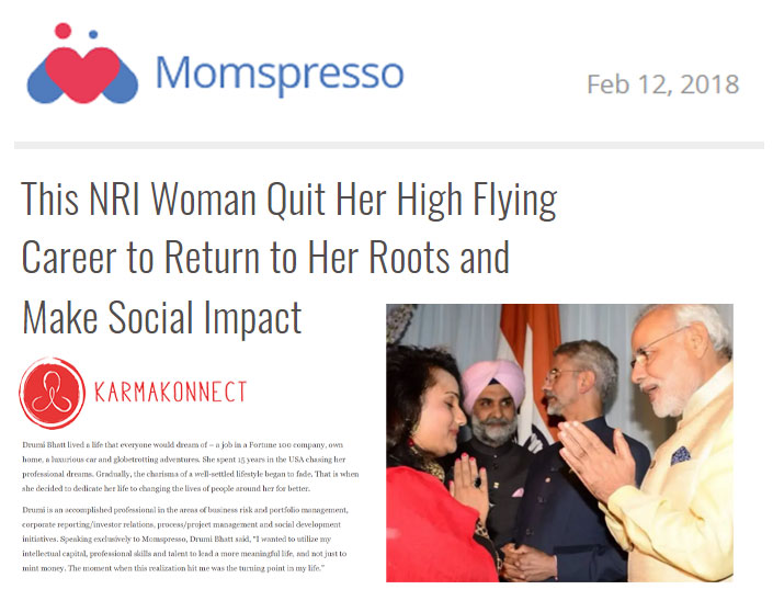Drummi is the founder of KarmaKonnect NGO, a citizens empowerment non-profit, under which she implements projects in rural empowerment, child education, and WASH Initiative throughout India collaborating with a network of ground partners in remote areas, and has led several volunteering missions across the world.